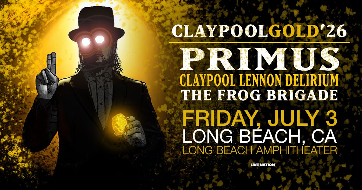 Les Claypool will hit the Long Beach Amphitheater on July 3, 2026 with Claypool Gold, a wildly ambitious, full-evening tour that brings together three of his most beloved and sonically adventurous bands - Primus, The Claypool Lennon Delirium, and Les Claypool’s Fearless Flying Frog Brigade - for one mind-melting musical experience. All the bands will share the stage all at once for a fluid show featuring wildly different setlists and surprises.